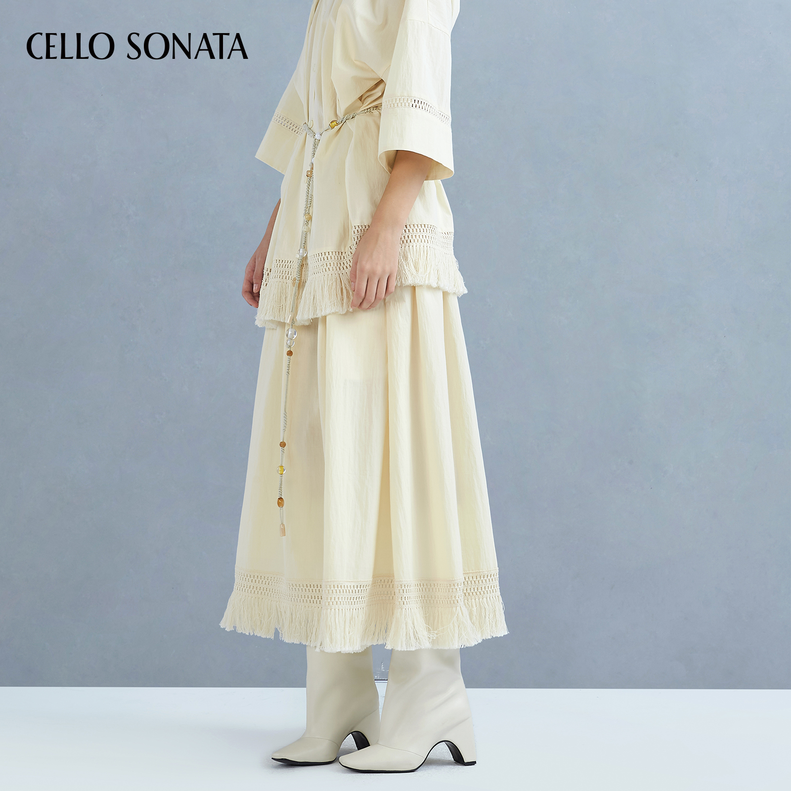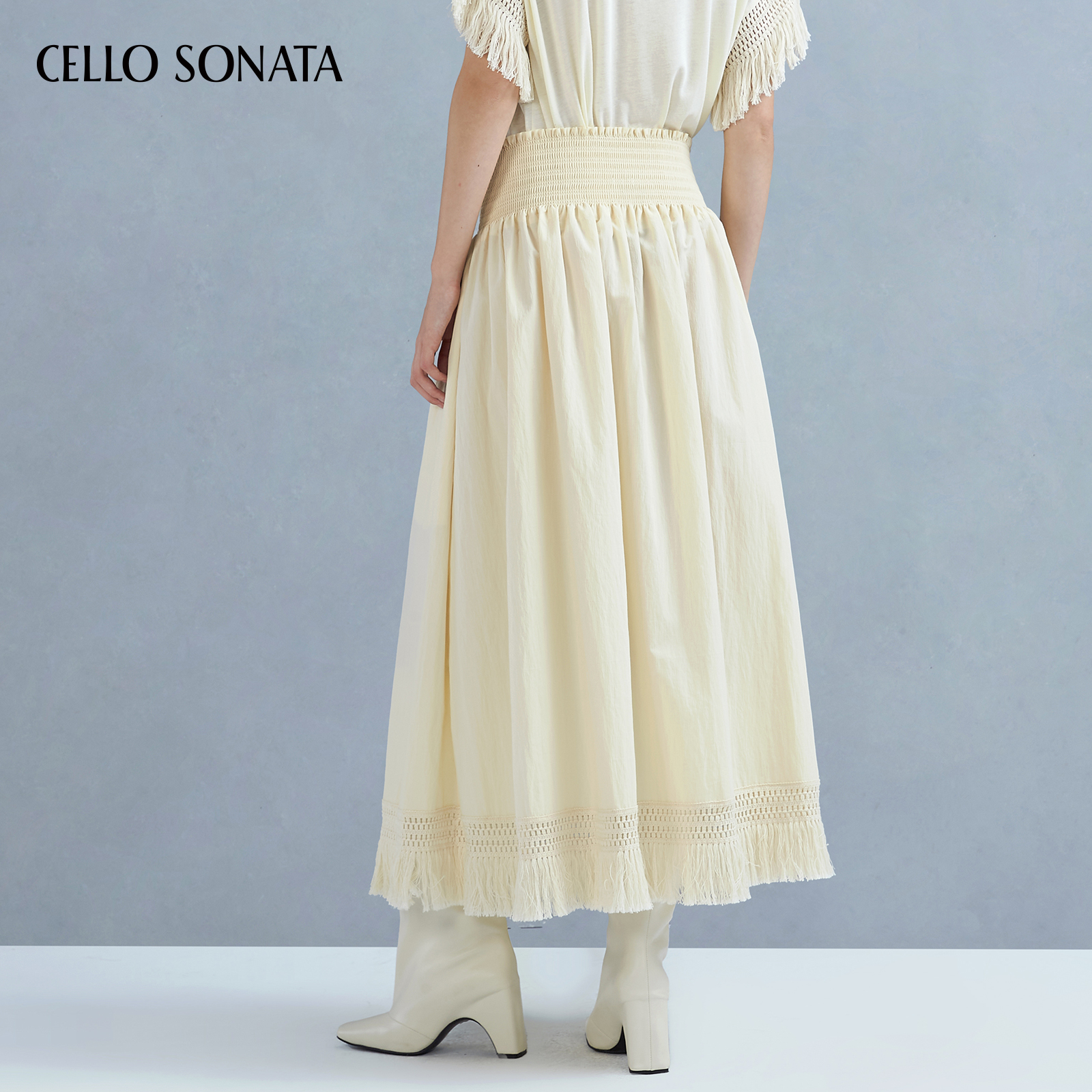 Cello 米色通勤日常镂空花边拼接半裙女半身裙 Sonata25春夏新款
