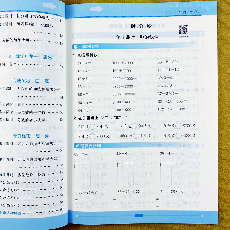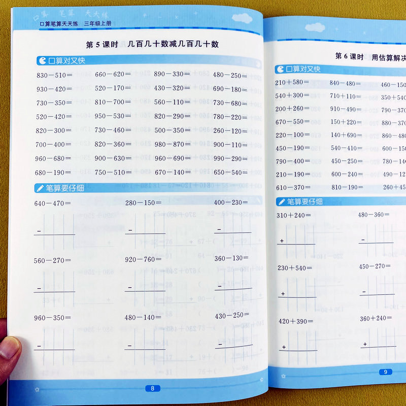 计算天天练万以内加减法多位数乘除法分数专项训练乐学熊 计算脱式 口算题卡三年级上册口算笔算计算天天练人教版 3年级上册口算竖式