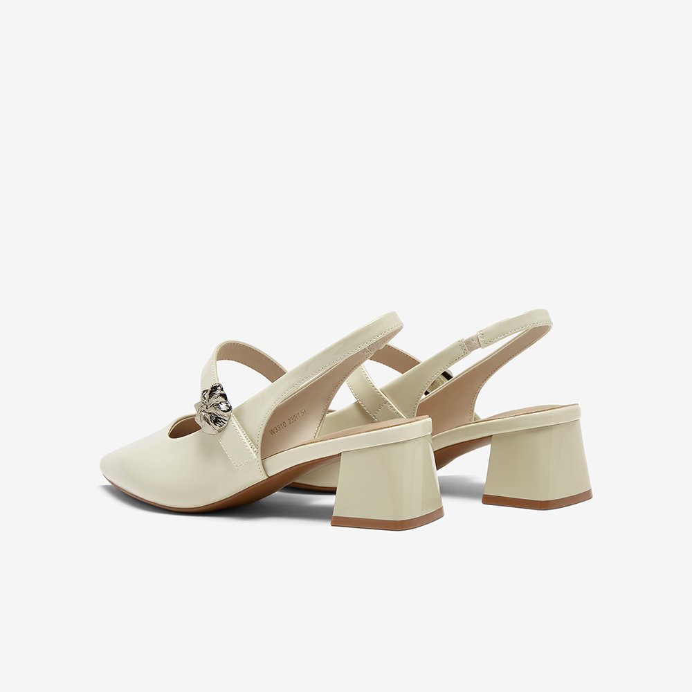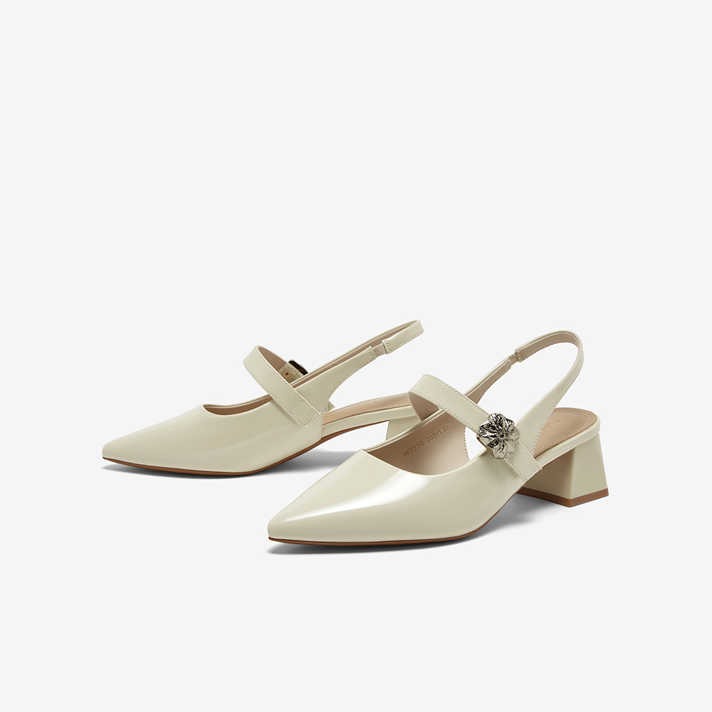 简约通勤粗跟尖头后空女凉鞋 时尚 W3310BH5 新款 百思图2025夏季