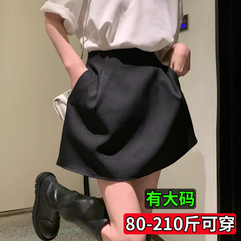 高腰梨型身材A字裙伞裙 半身裙百褶裙大码 胖mm显瘦百搭西装 中长款