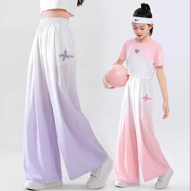 2025新款 薄款 夏装 大童冰丝防蚊裤 子 女童阔腿裤 儿童国风速干裤 夏季