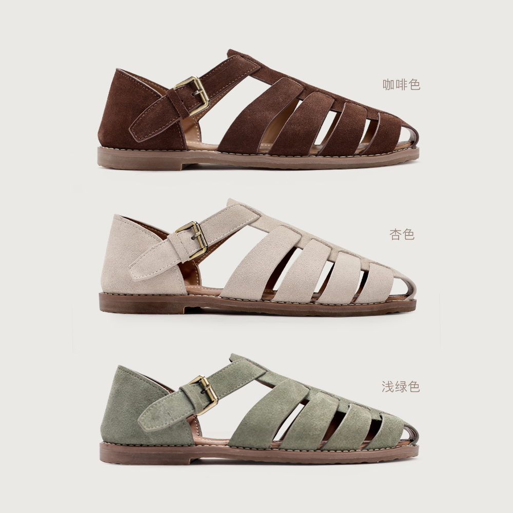 真皮透气防滑软底牛皮休闲中年拖鞋 骆驼男鞋 爸爸凉鞋 新款 2025夏季