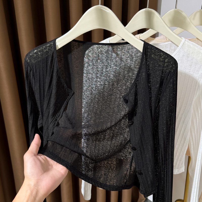 冰丝防晒披肩配裙子高级感外搭轻薄罩衫 新款 夏季 白色超薄针织开衫
