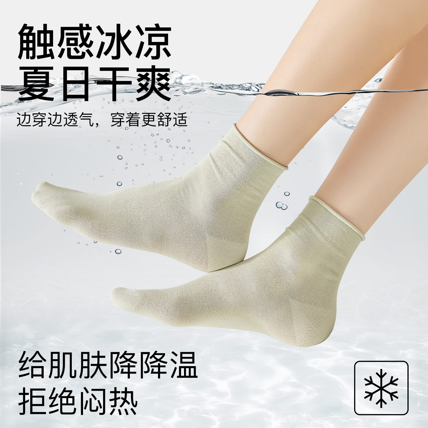 袜子女夏季 抗菌防臭中筒袜桑蚕丝凉感透气冰冰袜白色无骨短袜 薄款