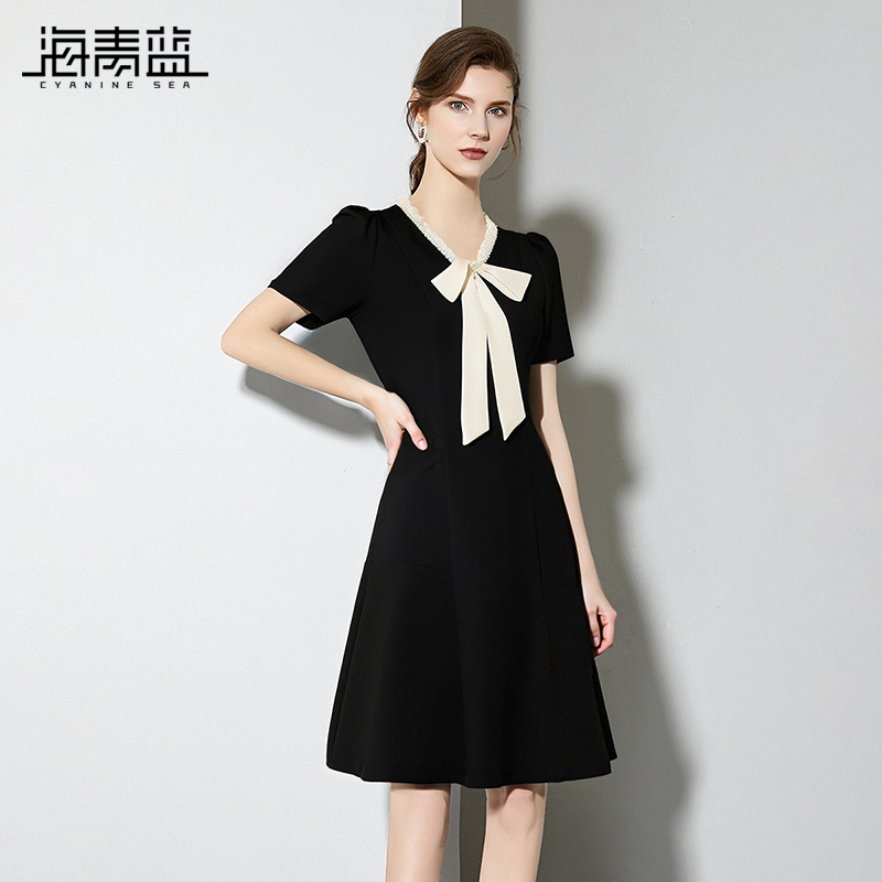 裙子小黑裙 钉珠长袖 dfvc名媛风撞色拼接丝绒连衣裙女2025秋季 新款