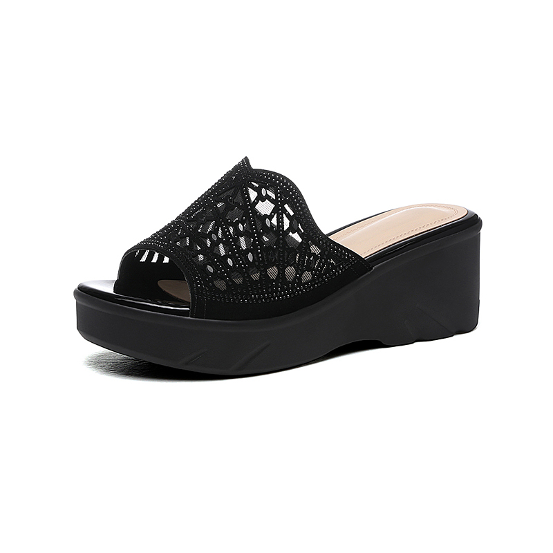 夏季 厚底洋气一字拖女凉鞋 坡跟拖鞋 外穿配裙子妈妈鞋 女款 2025新款