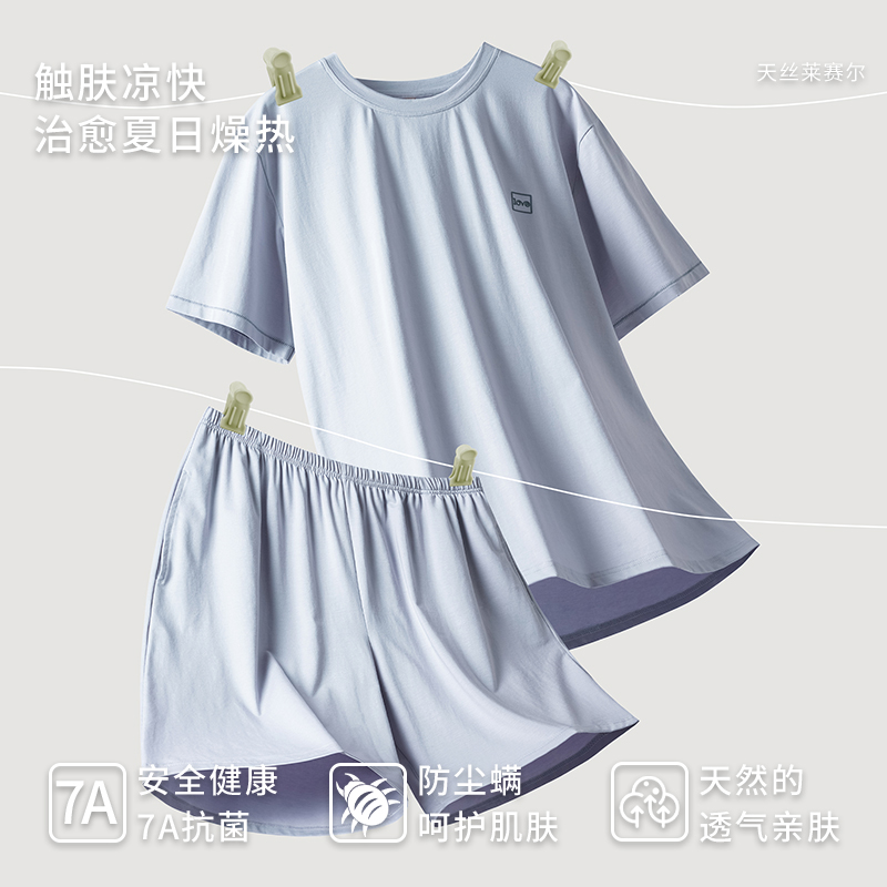 T恤抗菌防螨亲肤透气家居服 短袖 恒源祥天丝莱赛尔睡衣男夏季 薄款