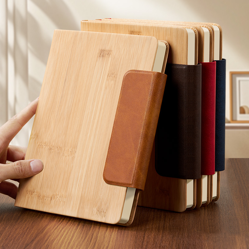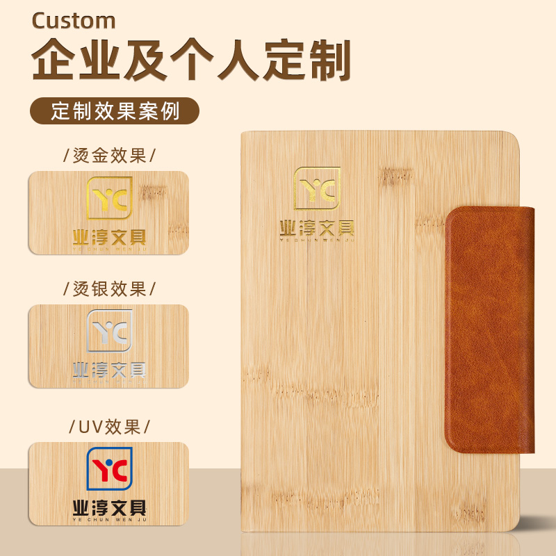 笔记本子a5仿竹纹皮面记事本PU拼接磁吸扣商务办公日记本学生复古风加厚道林纸200张刻字广告礼品可定制logo