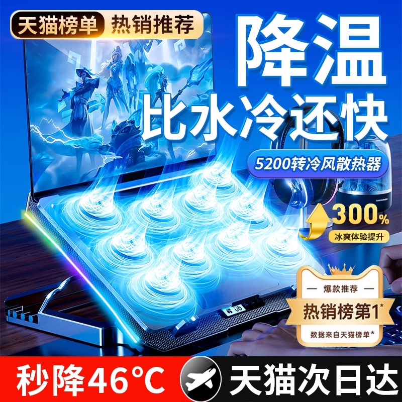 笔记本电脑散热器风压式 压风式 底座静音风扇制冷支架降温游戏本专用适用于戴尔华硕惠普苹果联想 冰感巨风