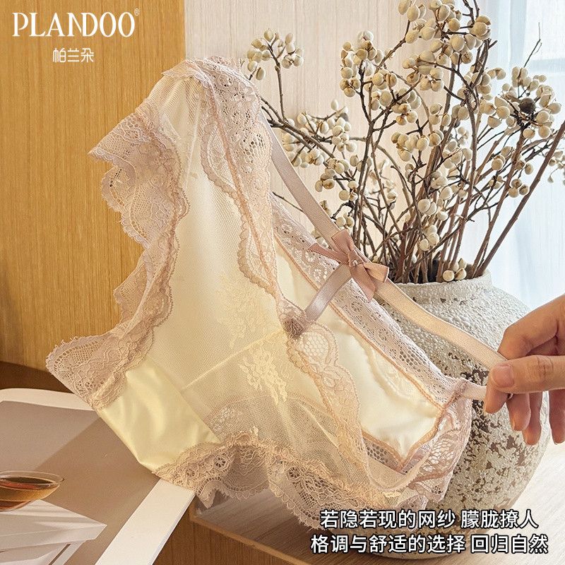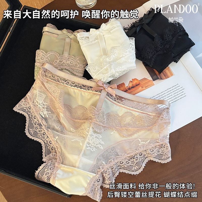 低腰性感三角裤 女士2023新款 抗菌珍珠 蕾丝网纱内裤 高级感法式
