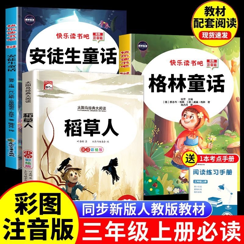 书叶圣陶老师寓言经典 安徒生童话全集格林童话故事书快乐读书吧三上阅读书籍推荐 课外书注音版 全套3册稻草人三年级上册必读正版