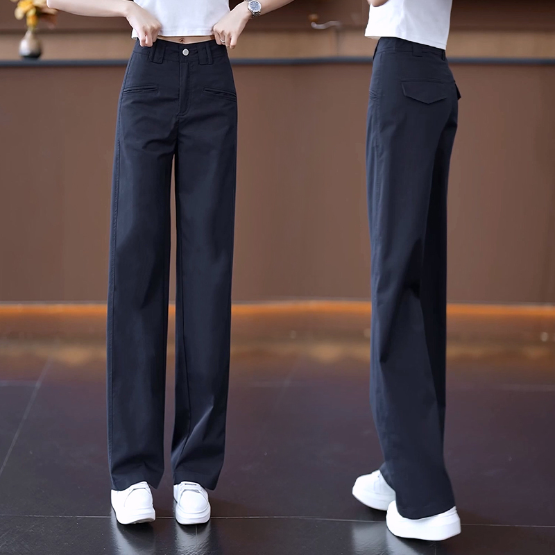 女2025新款 夏季 窄版 高腰垂感天丝女裤 裤 直筒阔腿裤 休闲西装 子 薄款
