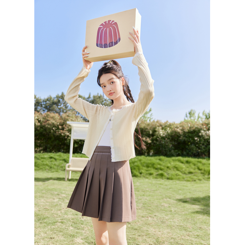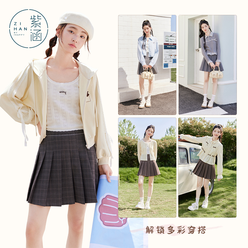 班尼路百褶半身裙女2025秋新款 小个子高腰显瘦学院风中长裙A字裙Q