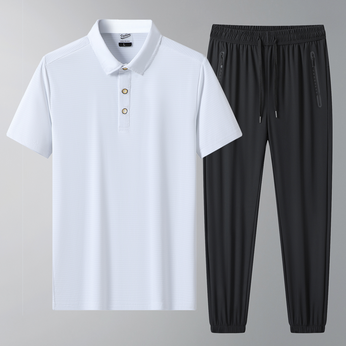 新款 中老年上衣爸爸T恤束脚长裤 冰丝polo衫 套装 两件套薄 短袖 夏季