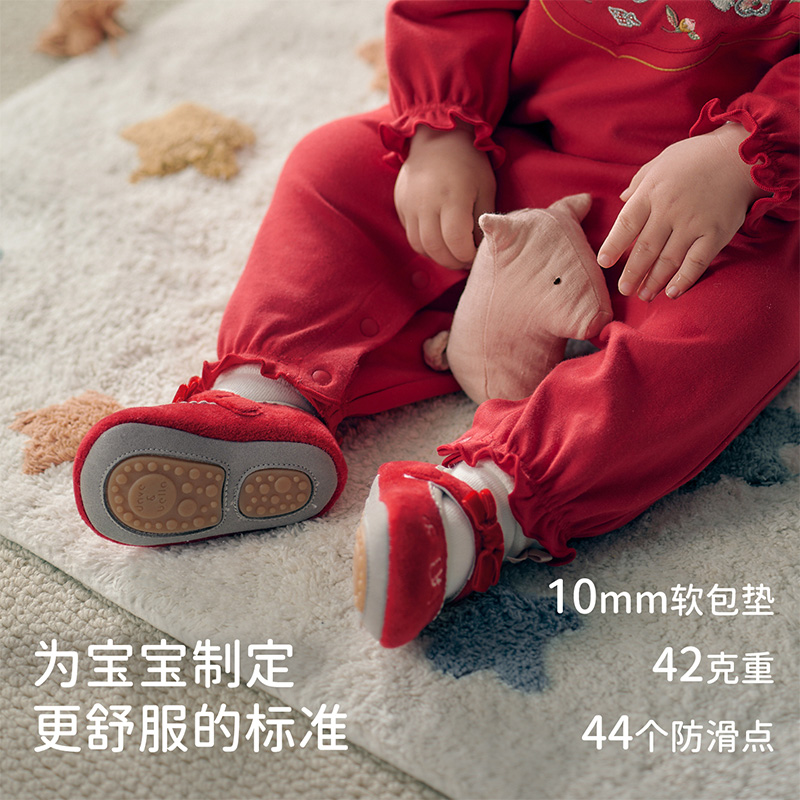 室内软底红色鞋 戴维贝拉女宝周岁童鞋 新款 2025秋季 子 婴儿步前鞋