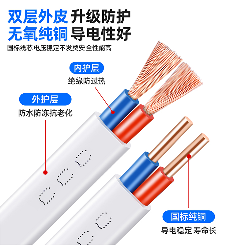 国标纯铜电线3C认证无氧铜芯家用软硬线护套线2芯1.5 46平方 2.5