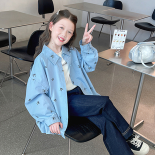 新款 大童上衣2025春秋装 衬衣儿童洋气网红衬衫 女童宽松潮搭中长款