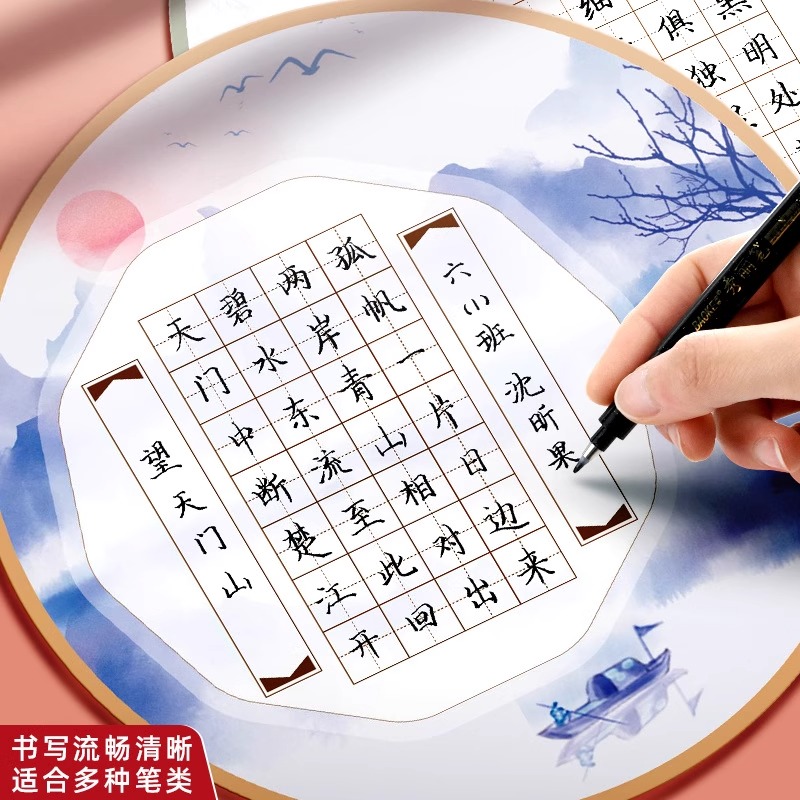 圆形硬笔书法作品纸田字格比赛专用纸小学生儿童每日一练古诗词五言七言绝句书写练习创作展示展览纸中国风复古练字帖钢笔铅笔加厚