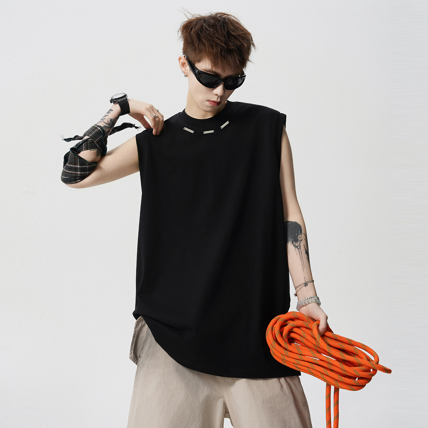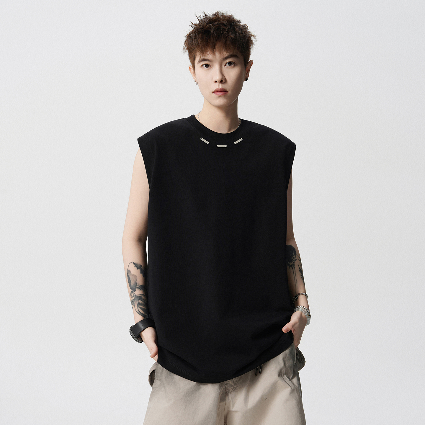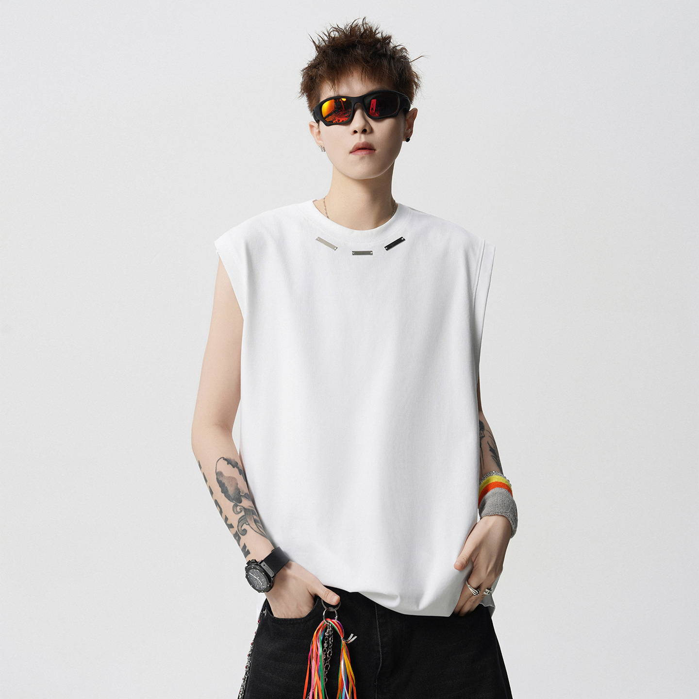 宽松运动无袖 新款 T恤 重磅设计感钢标白色坎肩背心男秋季 V37美式