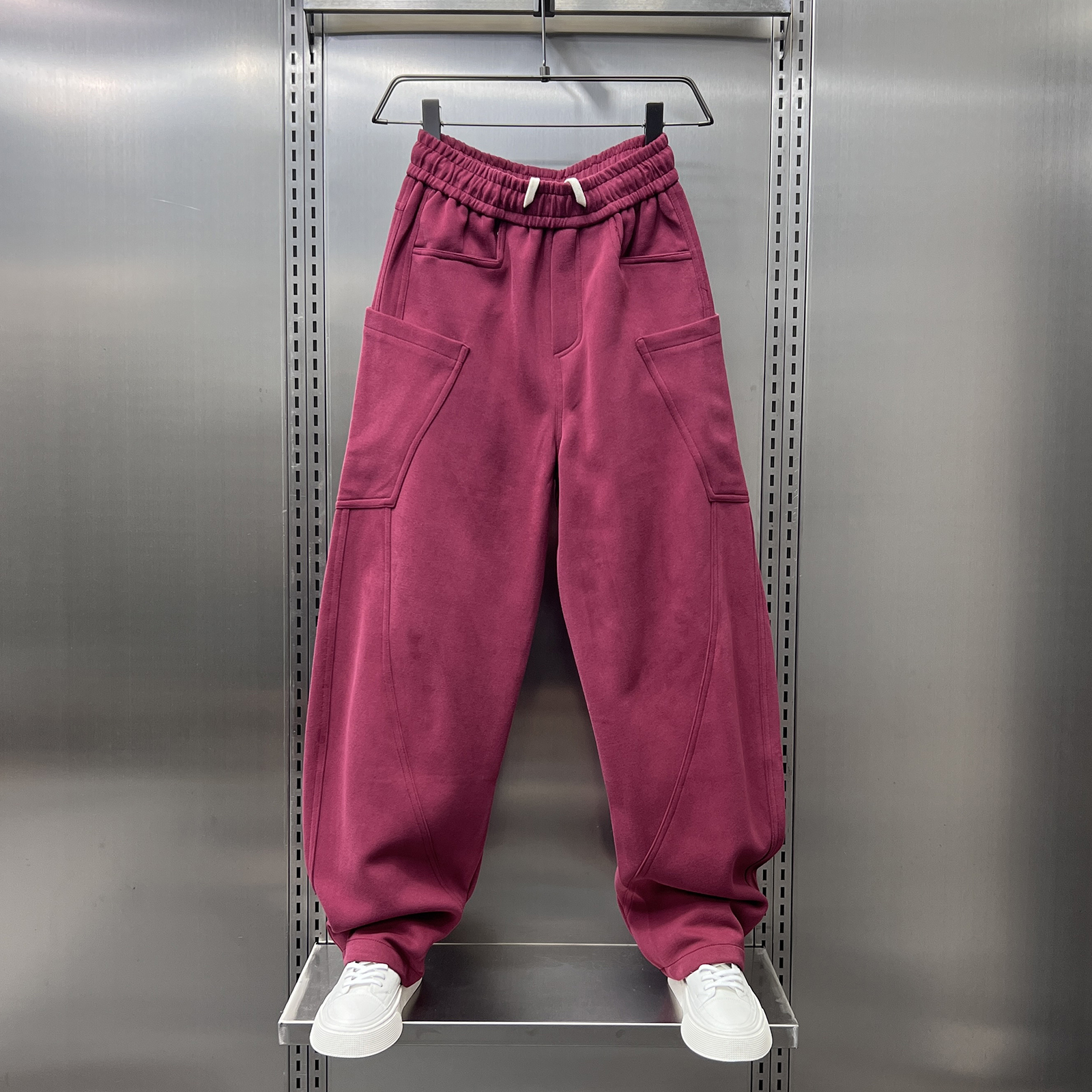 系带松紧宽松百搭休闲裤 鸭鸭羊毛蚕丝保暖卫裤 男士 新款 2025秋季