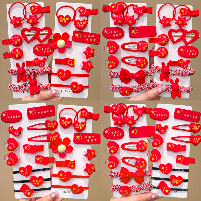 五角星发夹头绳儿童国庆节十一发饰女童五星红旗发绳爱心发卡皮筋