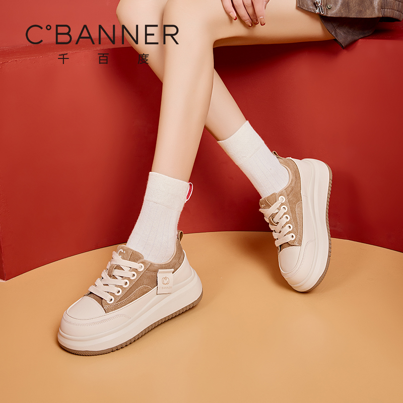 舒适增高松糕鞋 千百度厚底休闲鞋 日常百搭运动板鞋 新款 子 女秋季