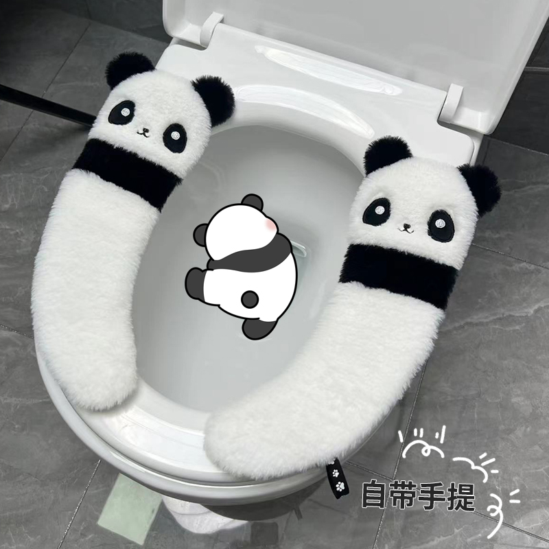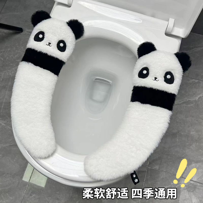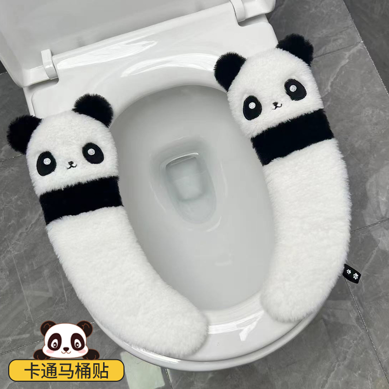 可爱熊猫马桶垫冬季 坐便器垫网红马桶圈套垫 加厚保暖兔毛绒粘贴式