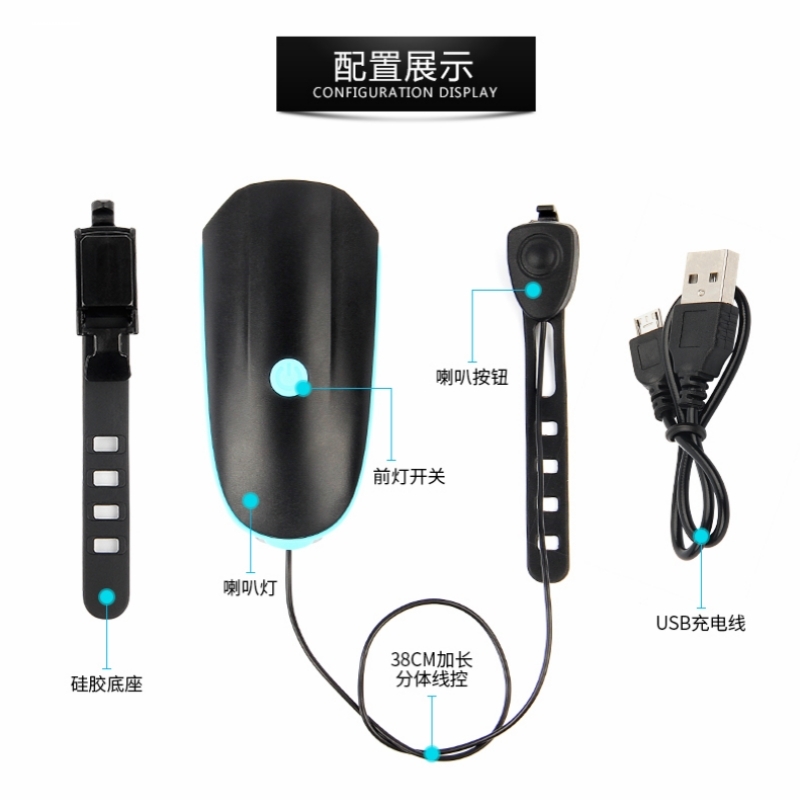 凤凰儿童自行车灯山地单车充电强光夜骑前灯超响铃铛夜间骑行喇叭