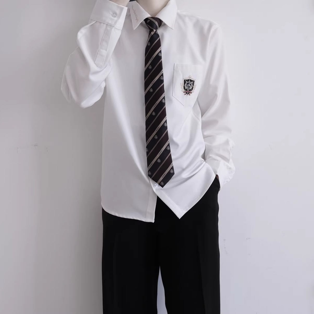 韩版 白色长袖 新款 男士 垂感上衣宽松高级感冰丝纯色凉感dk衬衣 衬衫