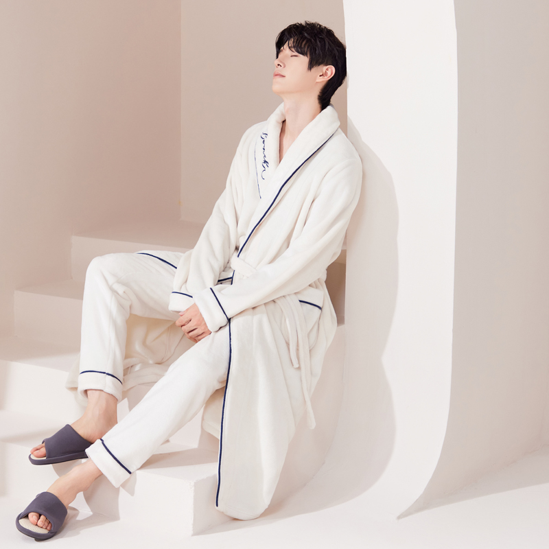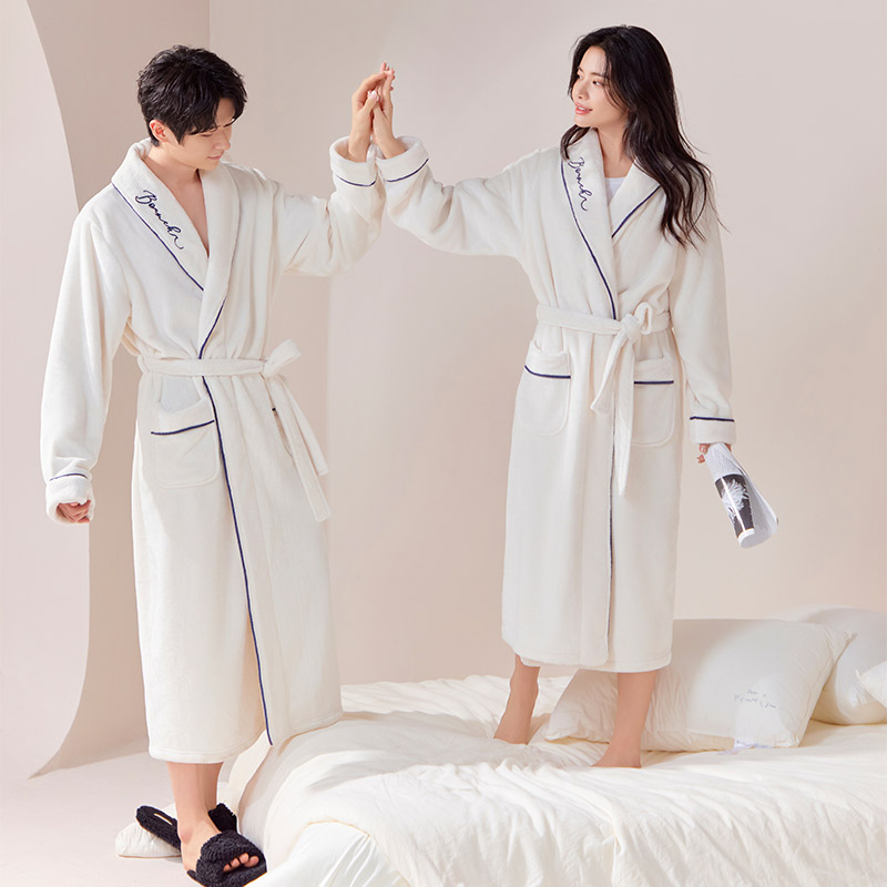 套装 浴袍2024新款 睡衣长款 加绒加厚法兰绒男士 珊瑚绒睡袍女秋冬季