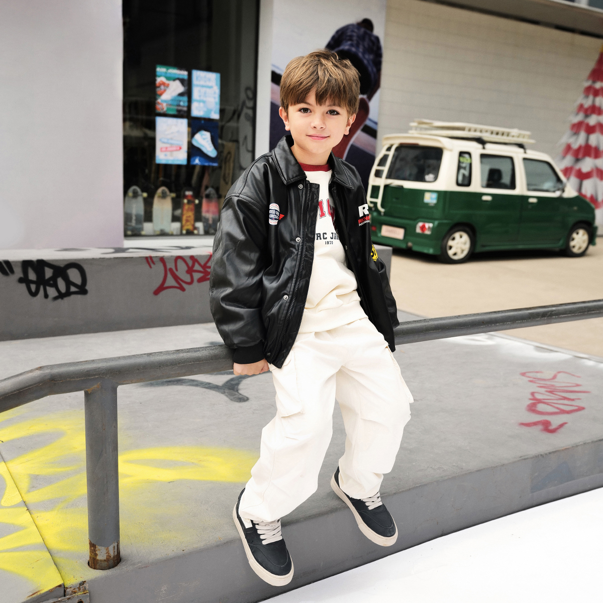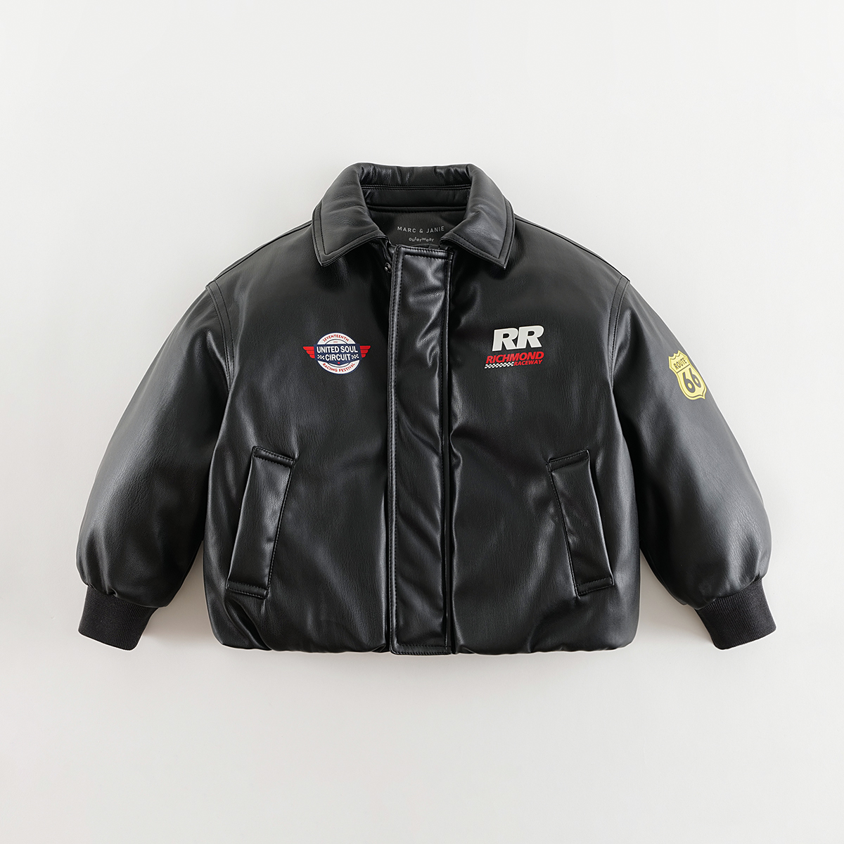 马克珍妮男童潮酷赛车风皮衣外套儿童飞行夹克棉衣秋冬新款 241026