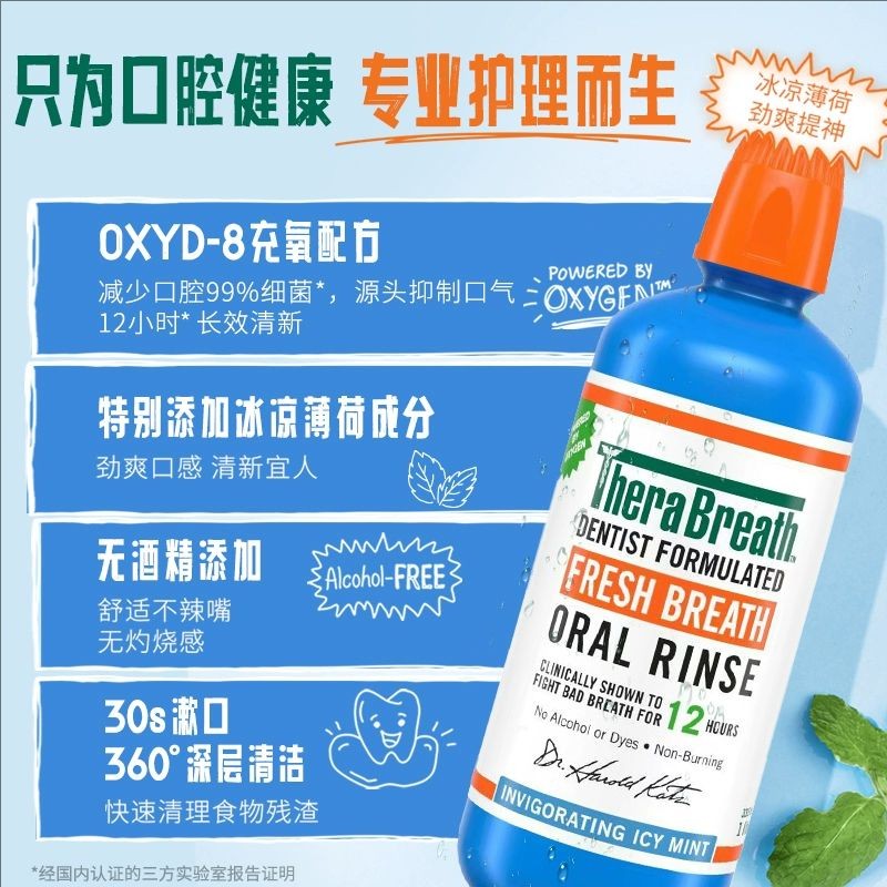 凯斯博士进口漱口水冰凉薄荷473 5瓶清新口气去异味清洁口腔0刺激