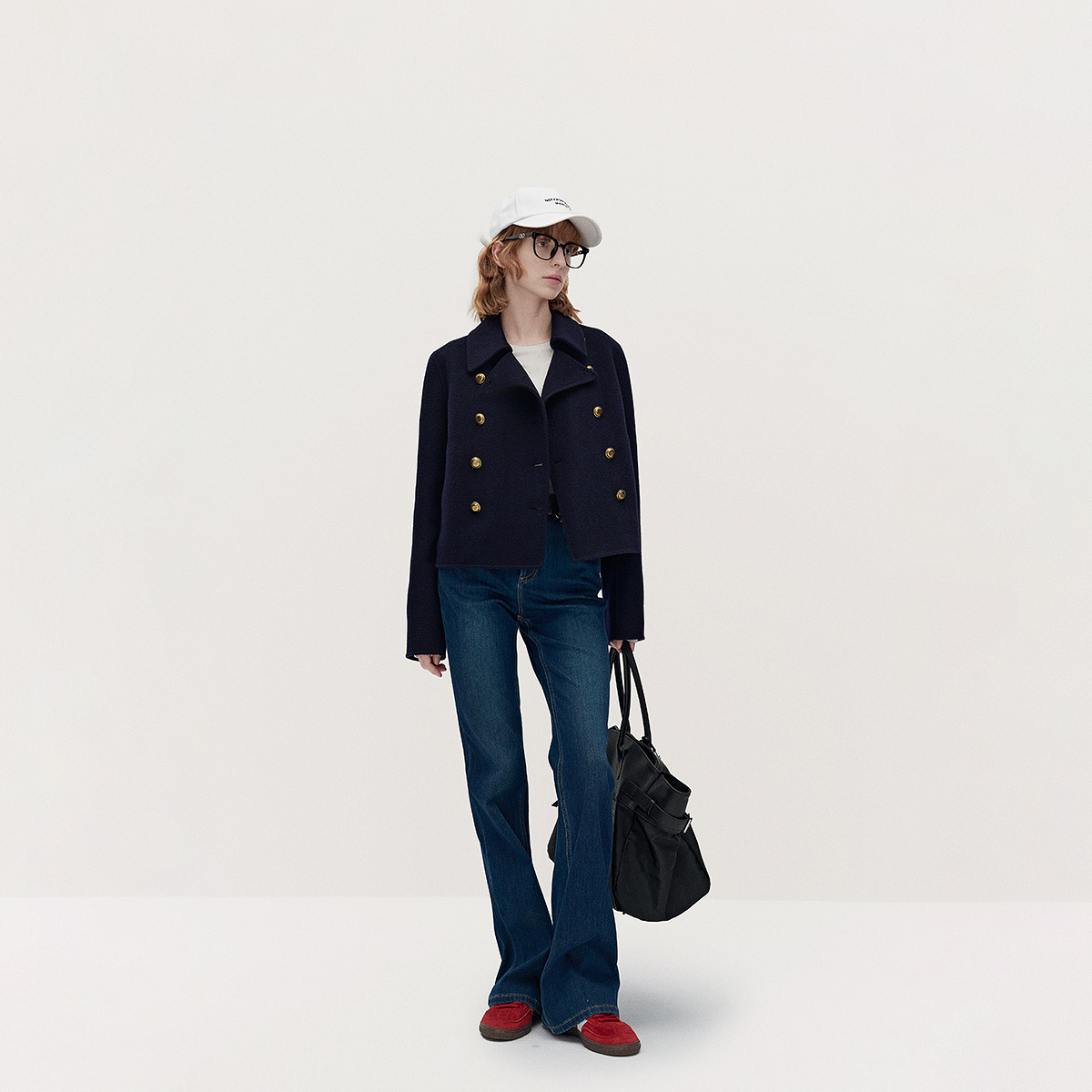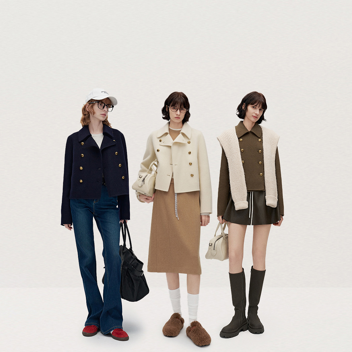 圆领大衣女小个子气质毛呢外套 高端羊毛双面呢短款 2025年春季 新款