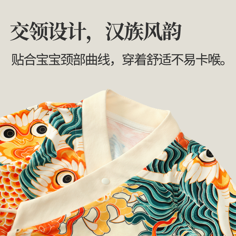 龙年婴儿满月宝宝衣服男新生中式 黄一周岁百天百岁宴连体礼服春秋