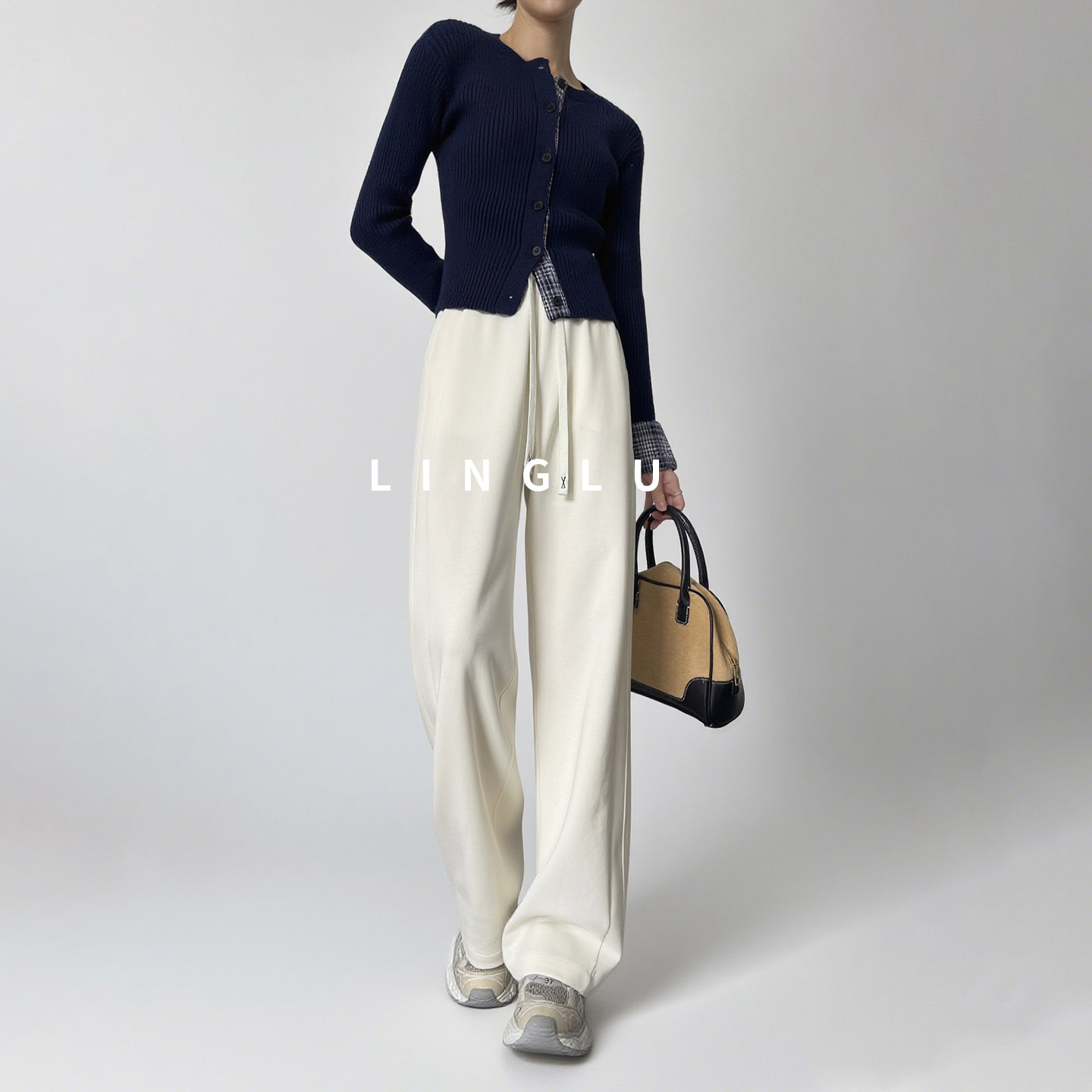 休闲宽松云朵奶芙裤 白色阔腿裤 今年流行梧桐裤 运动卫裤 女2025新款