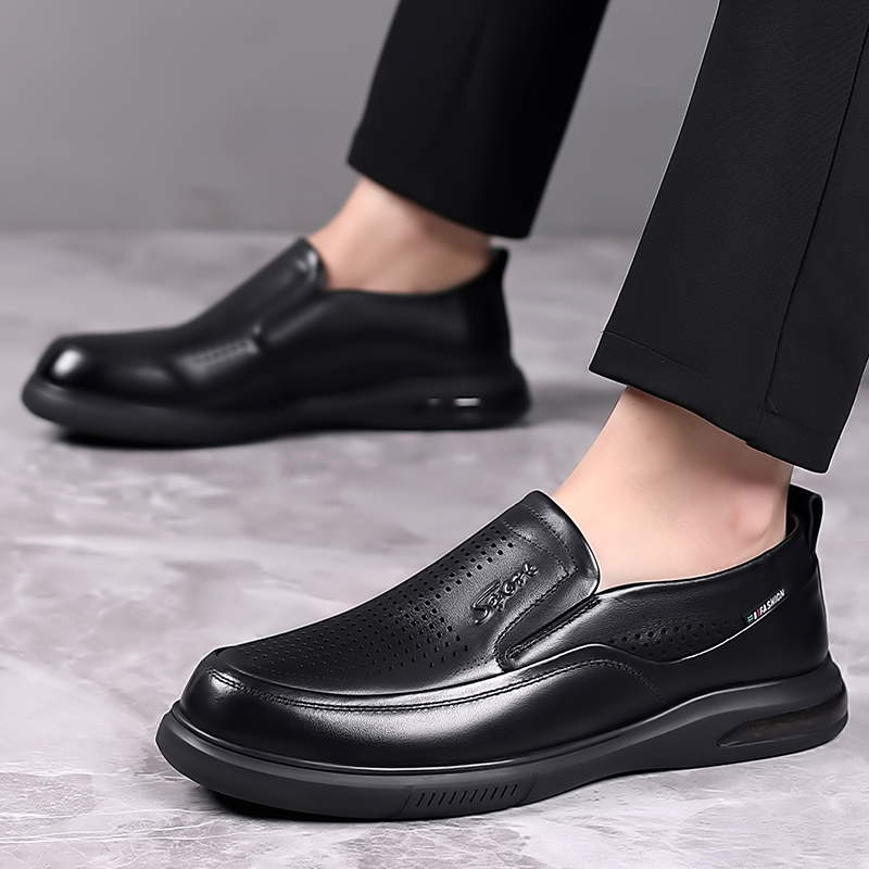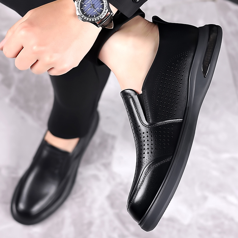 男透气中年商务休闲爸爸皮凉鞋 男鞋 真皮软底镂空皮鞋 夏季 2025新款
