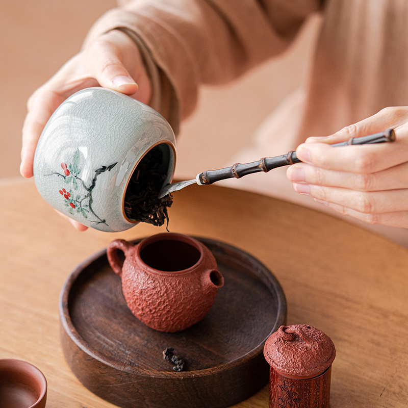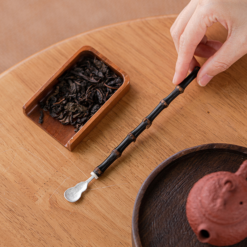 画续竹制茶勺单只紫竹茶拨茶铲套装 高级取茶单个功夫茶具配件