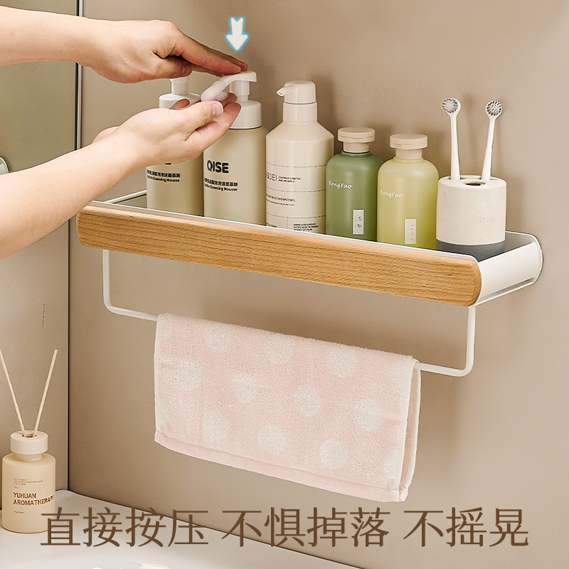 原木风卫生间置物架洗手台浴室卫浴厕所洗漱台墙上洗澡间化妆品架