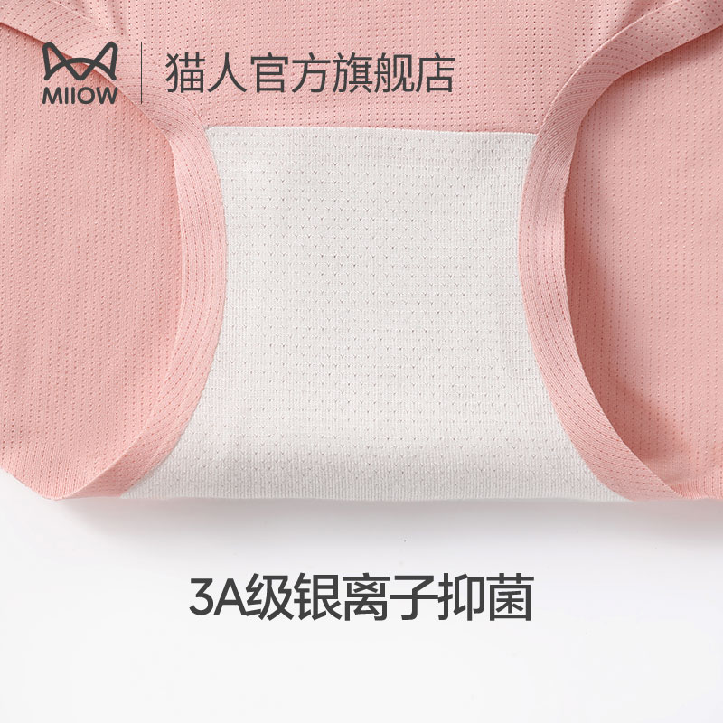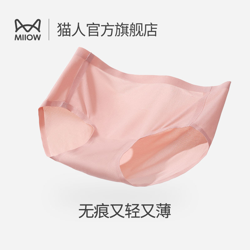无痕抑菌裆透气少女薄款 猫人冰丝女士内裤 夏中腰收腹提臀 折