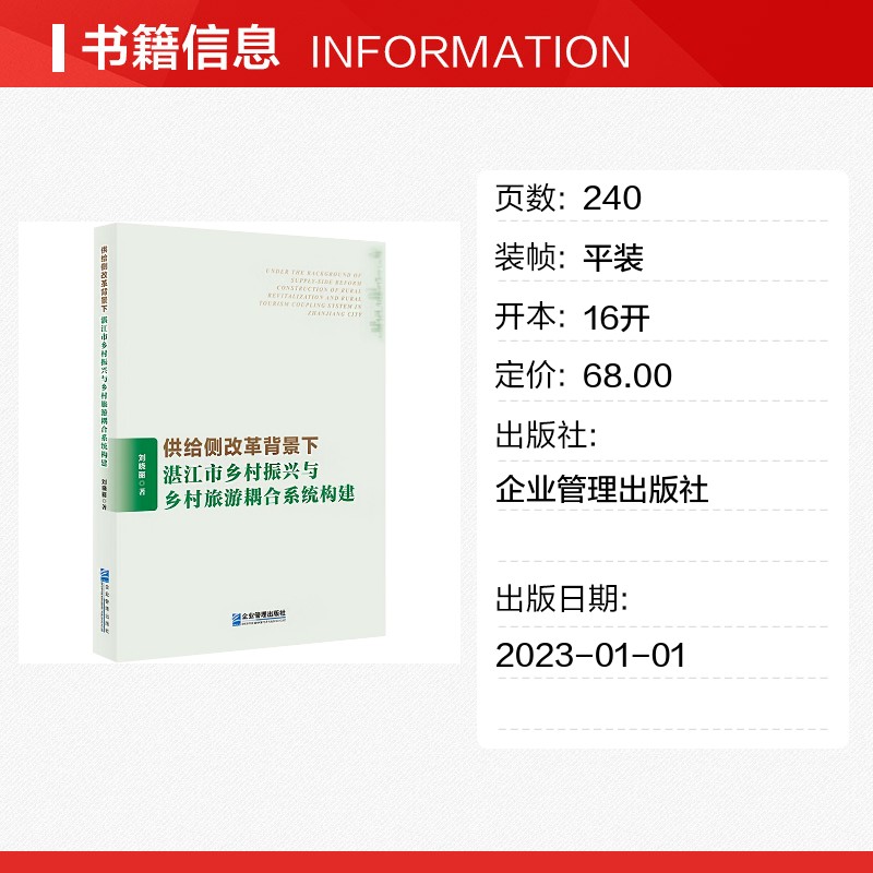各部门经济经管 励志 新华书店正版 供给侧改革背景下湛江市乡村振兴与乡村旅游耦合系统构建 企业管理出版 著 图书籍 社 刘晓丽