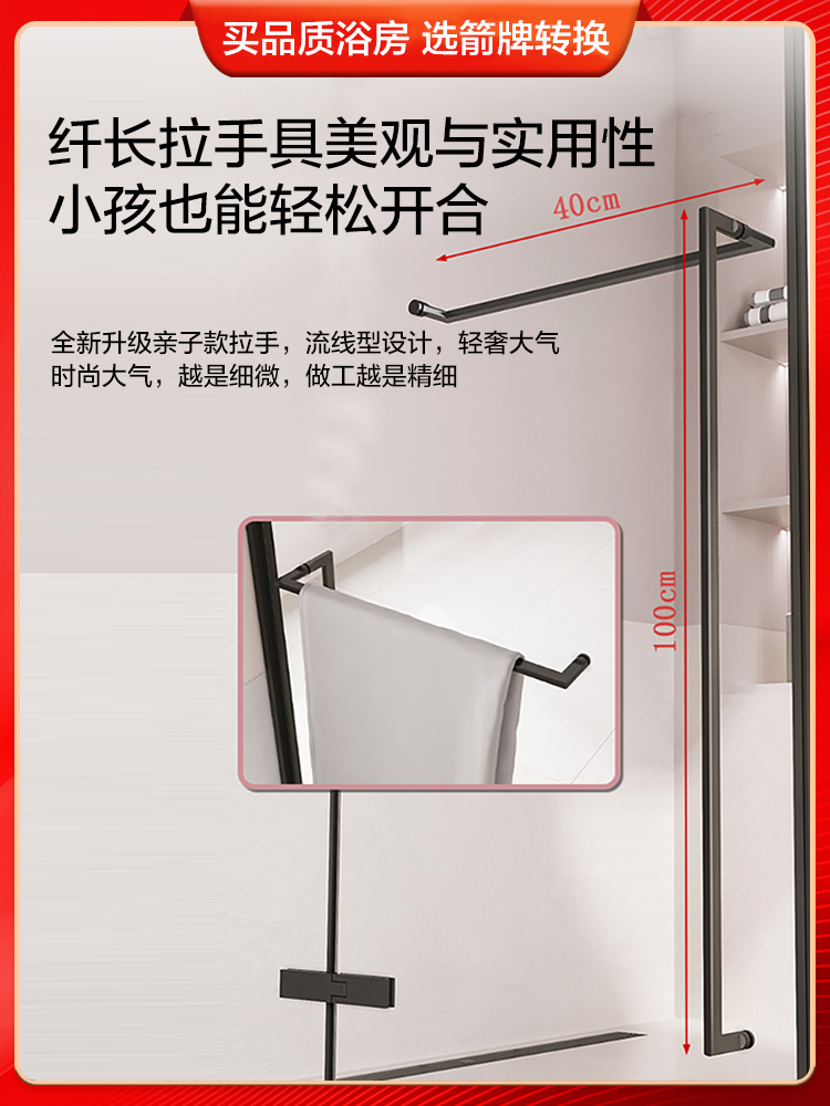 箭牌一字型淋浴房不锈钢极窄内外开枪灰色玻璃隔断卫生间浴室浴屏