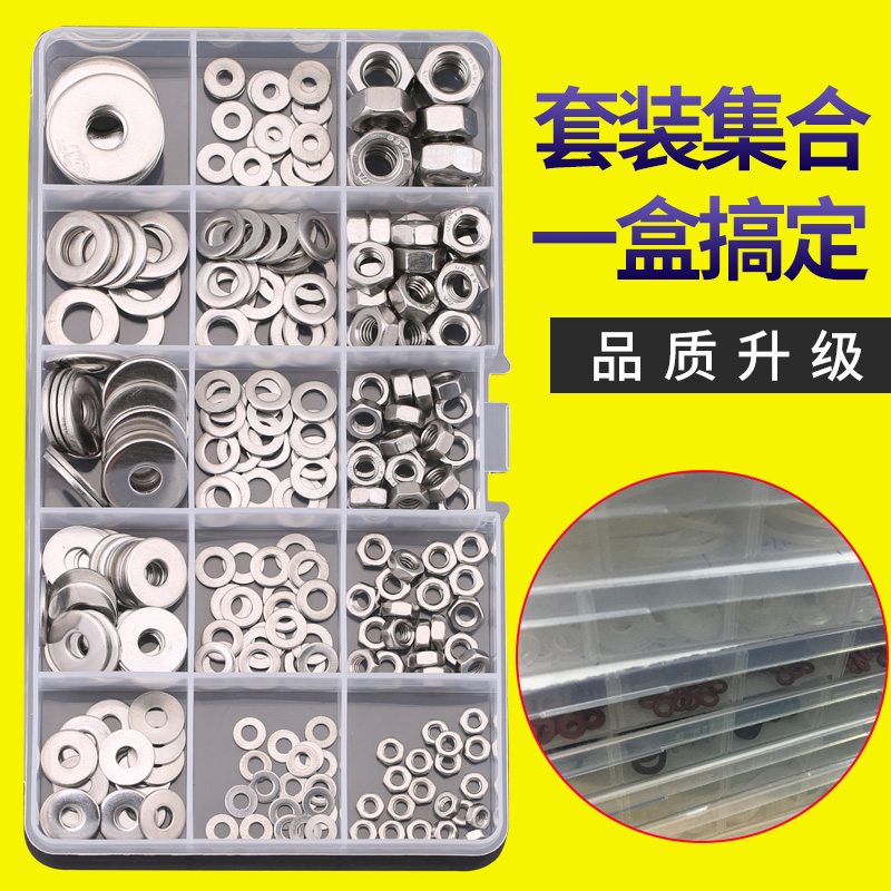 DIY组合垫圈套装 螺丝帽不锈钢平垫圈绝缘红钢纸尼龙防水垫片 盒装