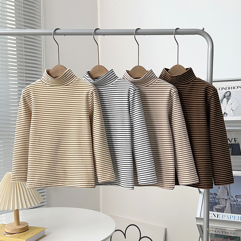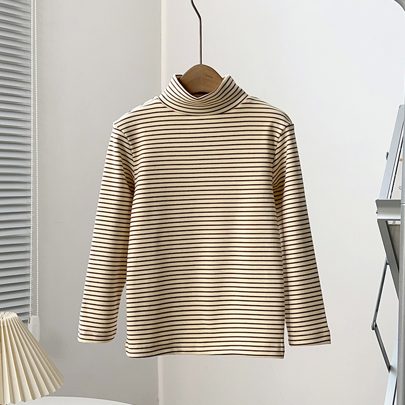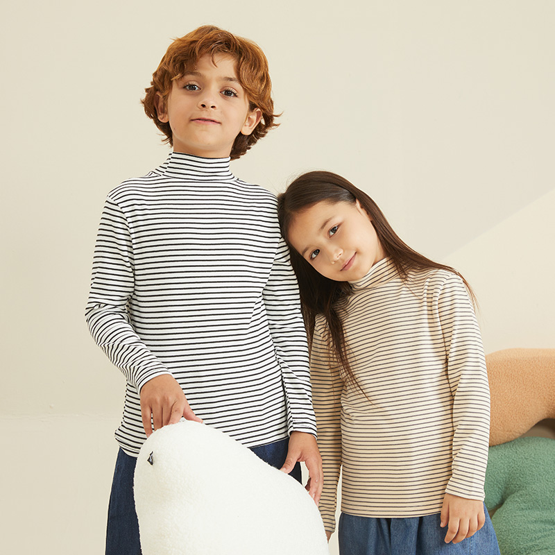吸湿秋衣 衫 宜而爽男女孩高弹柔软保暖打底衫 儿童百搭高领条纹长袖