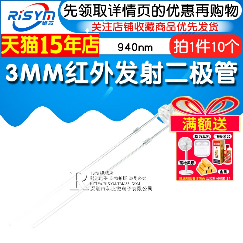 Risym 10个 3MM红外发射二极管F3红外发射管940nm遥控信号发送管