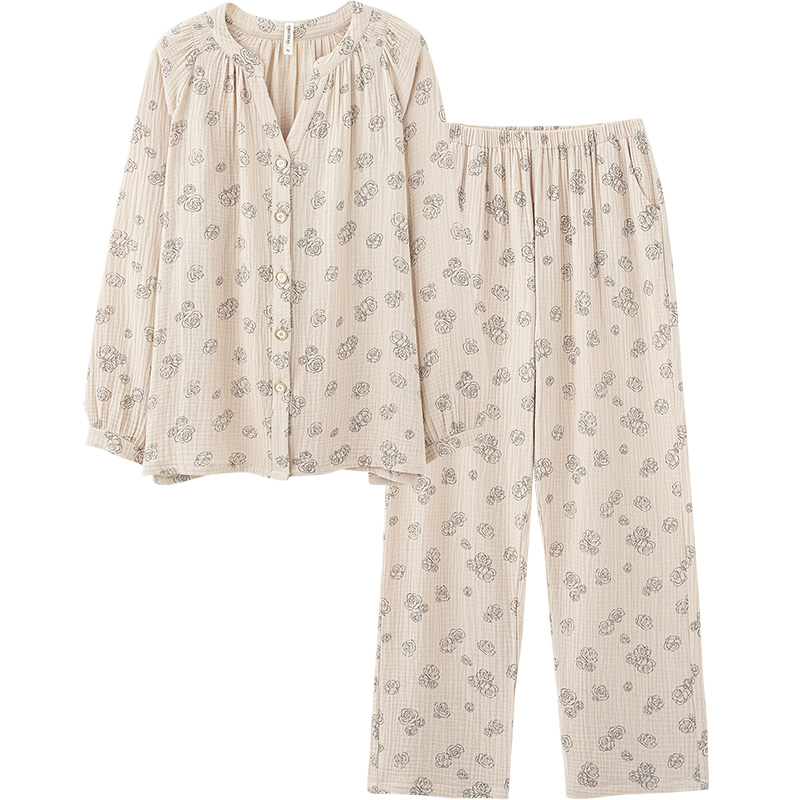 2023新款 国风禅意文艺秋季 全棉纱布新中式 思莉太太睡衣女春秋款