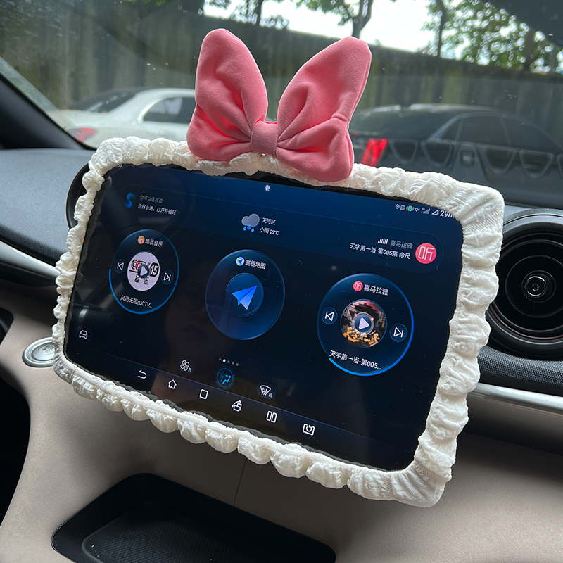 车载小摆件蝴蝶结车内饰屏幕保护套仪表台导航改装 框可爱后视镜套