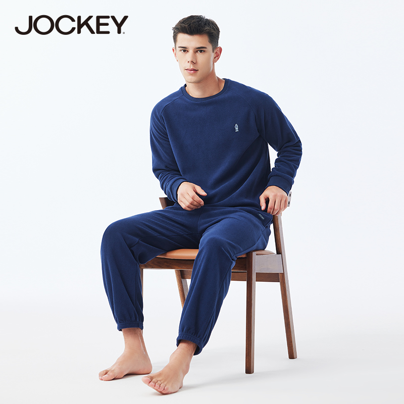 简约男士 长裤 摇粒绒保暖家居服春秋长袖 jockey男秋冬睡衣套装