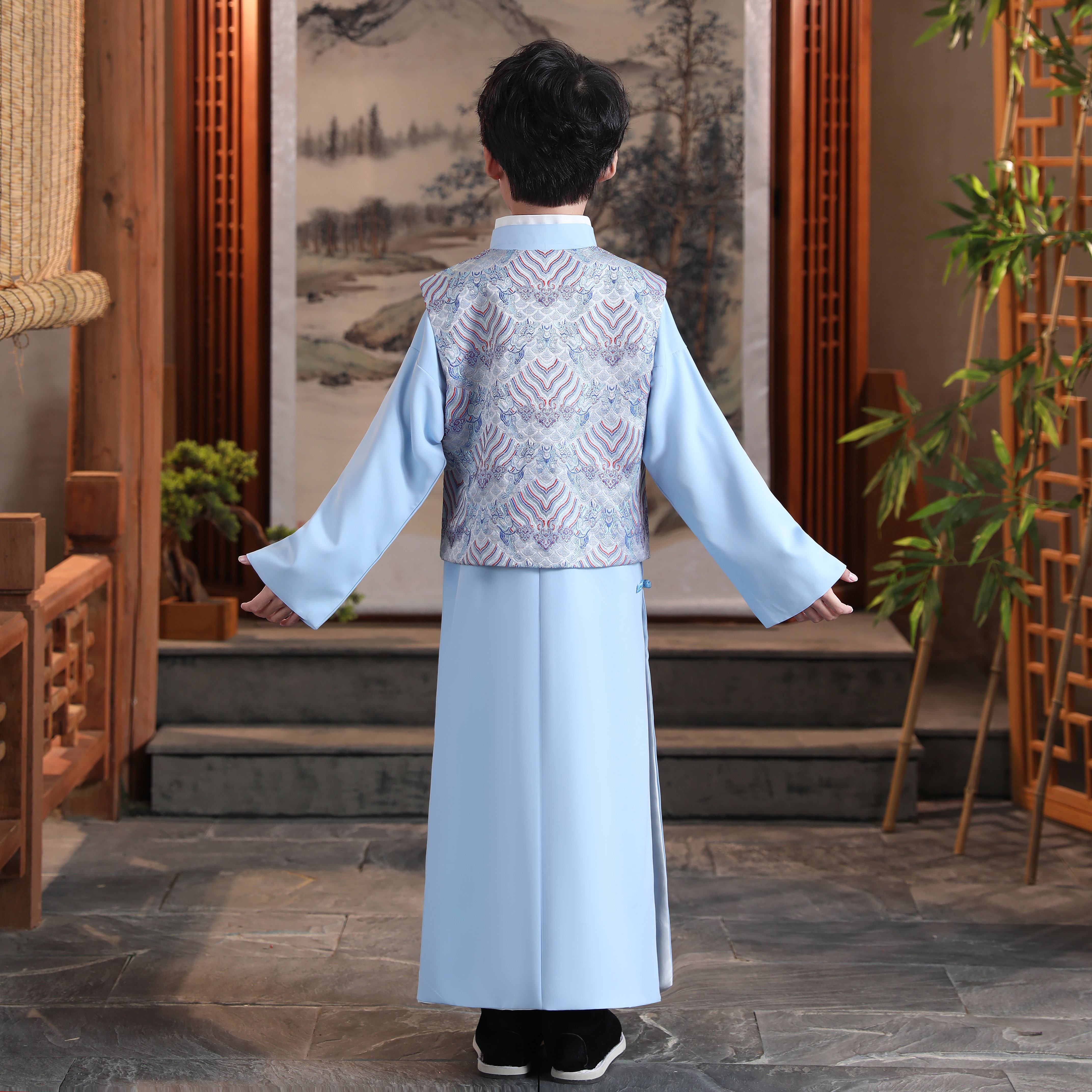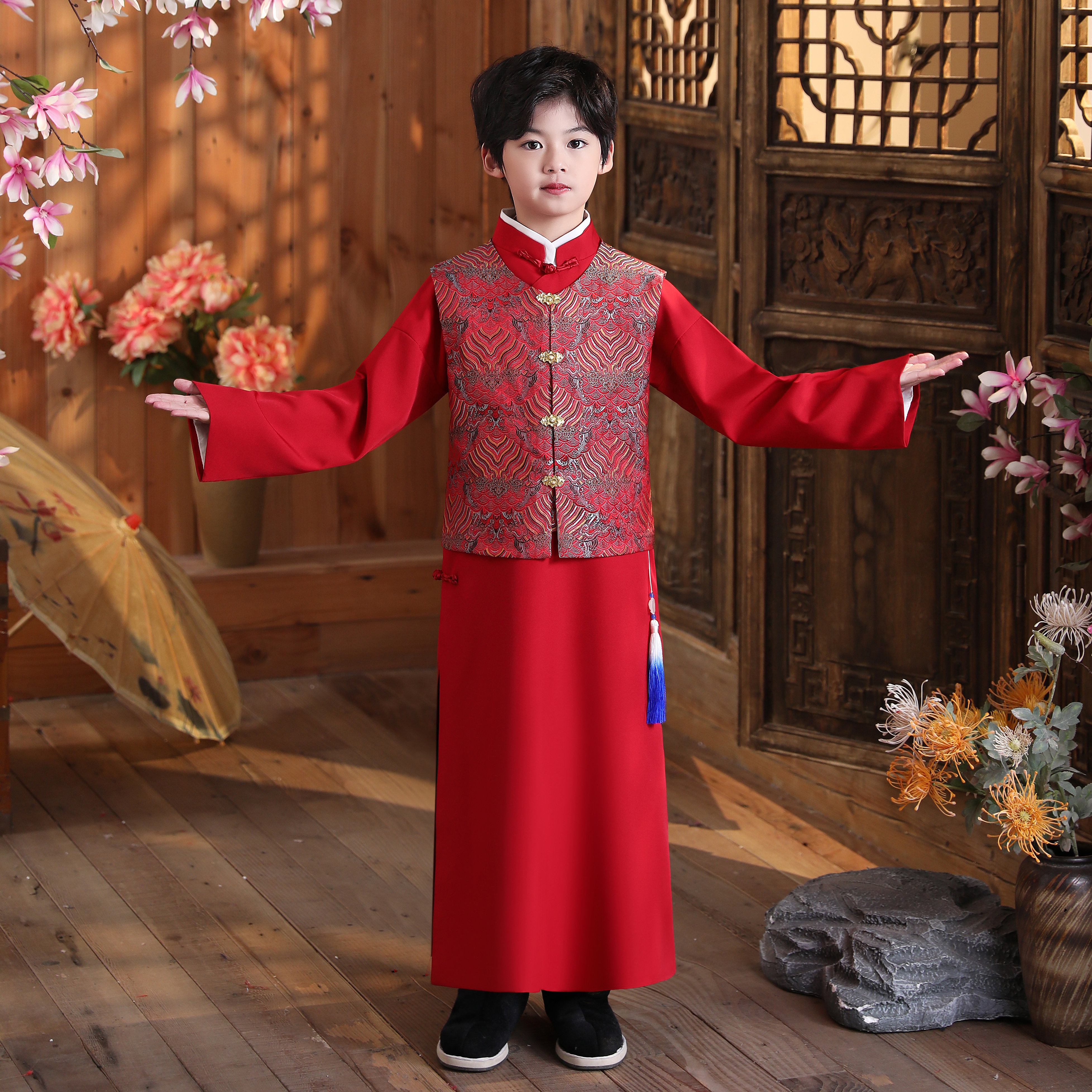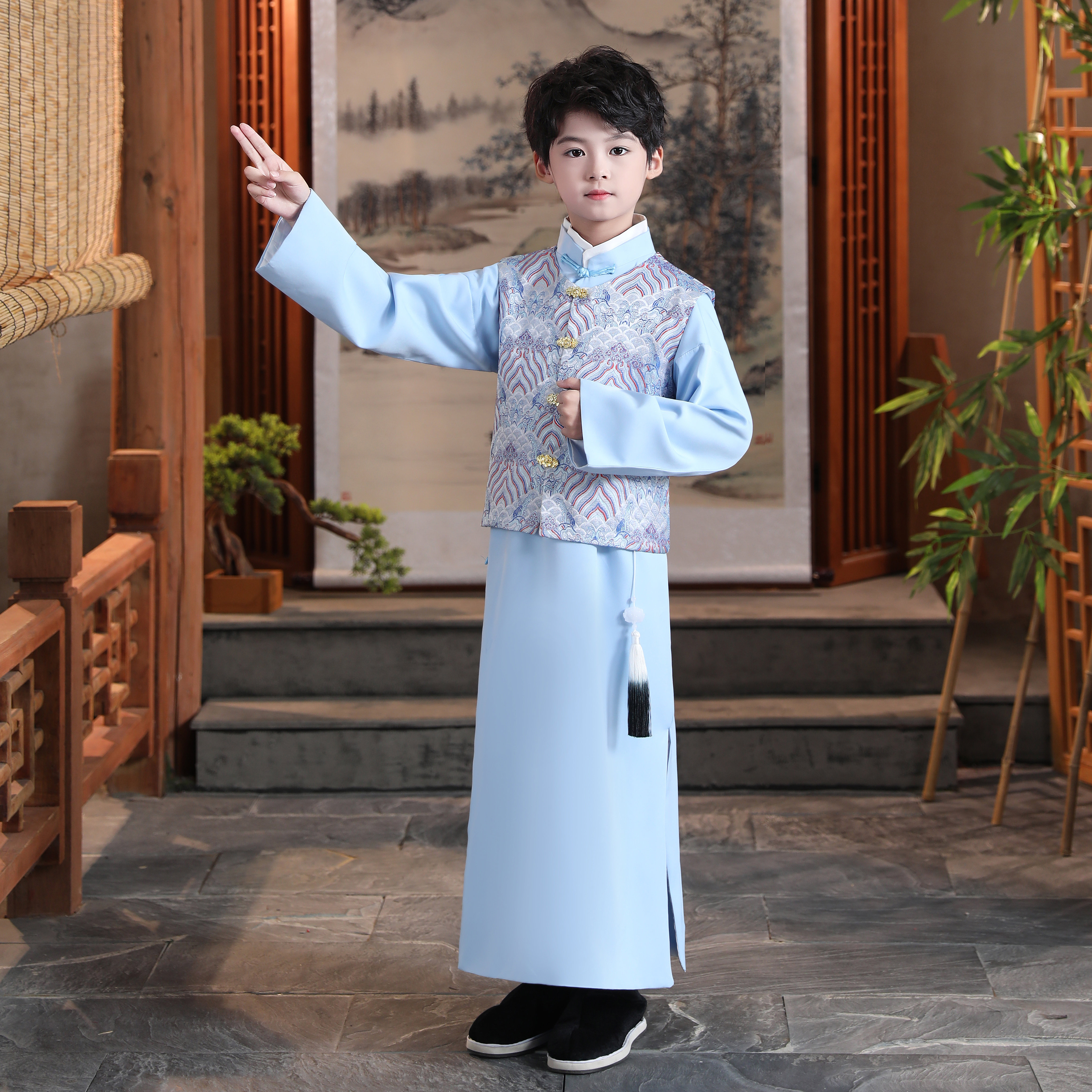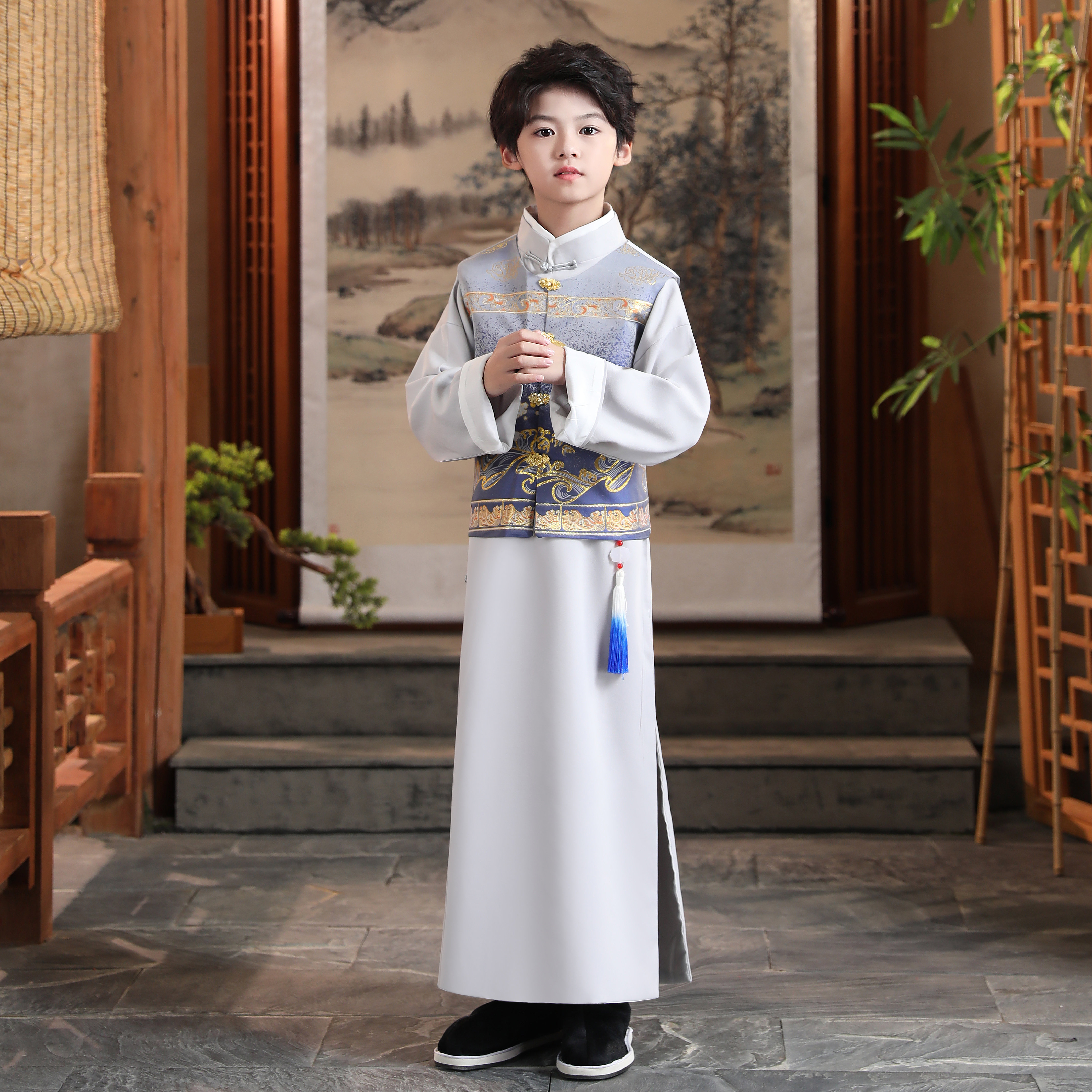 民国长袍古风儿童唐装 男童中式 复古小孩大褂古装 演出服装 学生 长衫