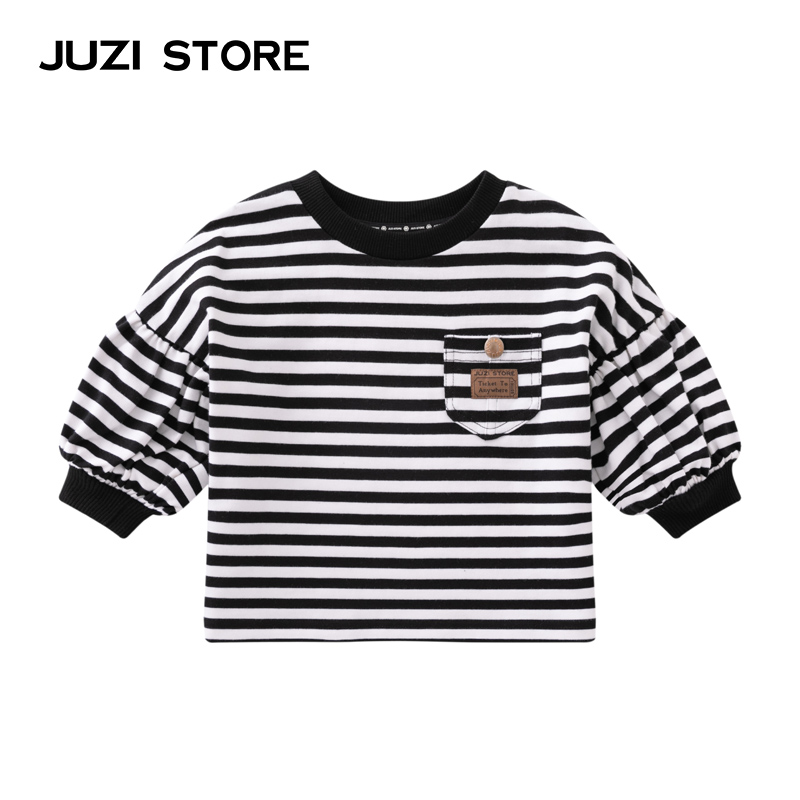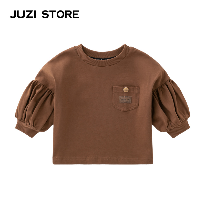 套头衫 JUZI 饰花苞袖 粗针单面布铜扣装 T恤女童1233101 STORE童装