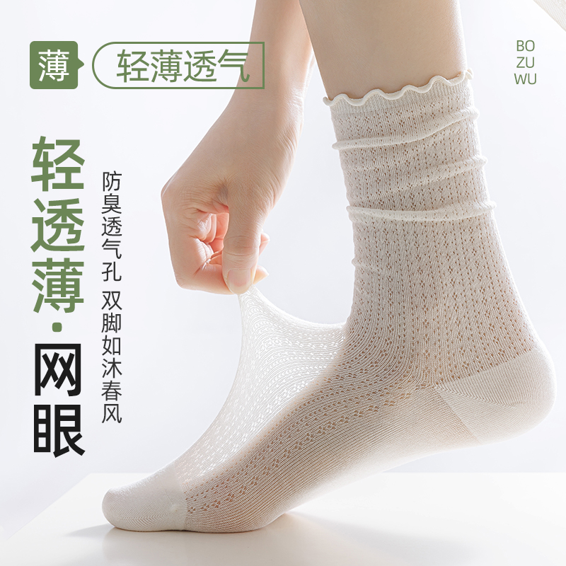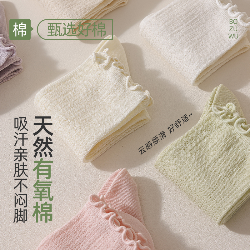乐福鞋 中筒堆堆袜配小皮鞋 无骨花边袜 薄款 松口纯棉月子袜子女夏季